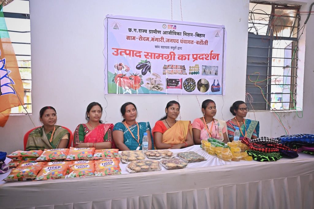 कार्यक्रम में स्व सहायता समूहों द्वारा निर्मित वस्तुओं को प्रदर्शित किया गया और आगंतुकों को उपहार स्वरूप भेंट किया गया।