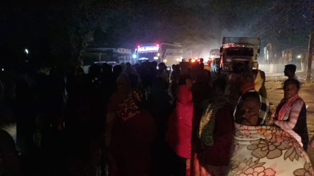 सड़क पर हजारों लोगों ने चक्काजाम कर दिया, आग जलाए—रात 1:30 बजे तक हंगामा थमा नहीं।