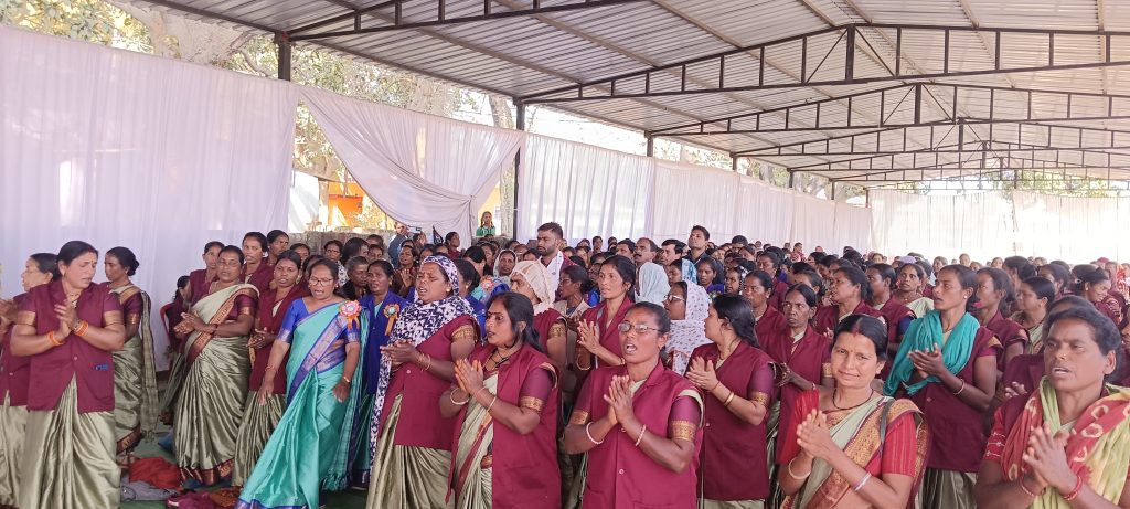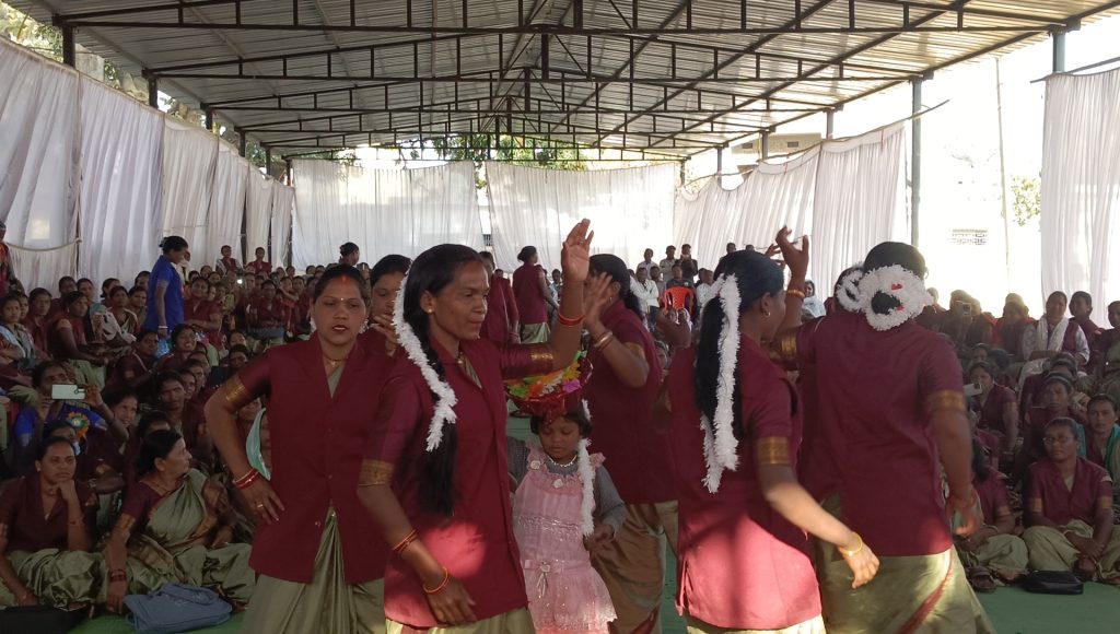 कार्यक्रम की शुरुआत मां सरस्वती के मंगलाचरण के बाद  एम टी दीदियों के स्वागत गीत और पुष्प गुच्छ भेंट से हुई।