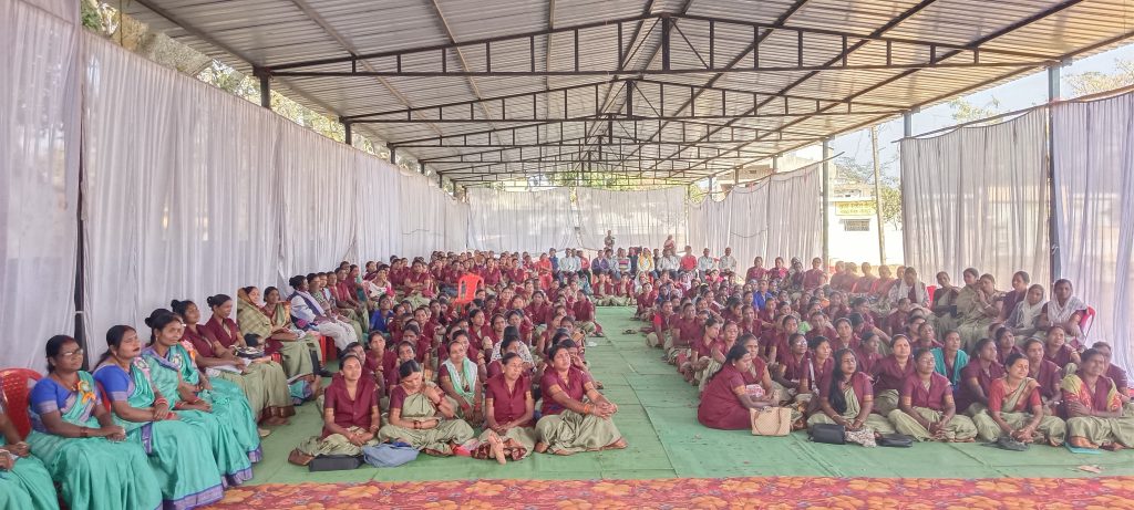 एमएलए एजुकेशन सेंटर परिसर में जुटीं स्वास्थ्य कार्यकर्ता; टीकाकरण, स्वच्छता और ग्राम पंचायत की समस्याओं एवं नए भवन की सौगात पर हुई चर्चा