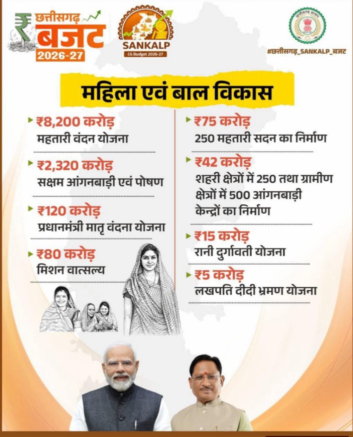 नई योजना के तहत बालिकाओं के लिए 15 करोड़ रुपये का प्रावधान। इन योजनाओं से सरगुजा की हजारों महिलाओं और बालिकाओं को प्रत्यक्ष लाभ मिलेगा।