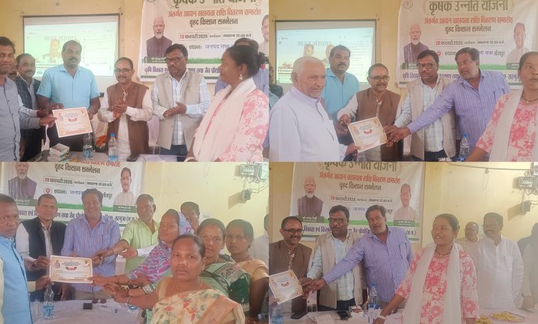 कृषक उन्नति योजना के तहत आयोजित समारोह में जनप्रतिनिधियों ने सौंपे प्रमाण पत्र, किसानों के चेहरों पर दिखी खुशी