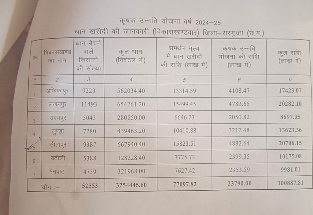 कार्यक्रम में अनिल अग्रवाल (प्रदेश उपाध्यक्ष, किसान मोर्चा छत्तीसगढ़), जिला पंचायत उपाध्यक्ष देवनारायण यादव, किसान मोर्चा सरगुजा जिलाध्यक्ष अनिल निराला उरांव, आदिवासी मोर्चा सरगुजा जिलाध्यक्ष विंदेश्वरी लाल पैंकरा, जिला पंचायत सदस्य एवं किसान कांग्रेस ब्लॉक अध्यक्ष शिवभरोष बेक, कृषि विभाग की एसडीओ अनिता एक्का, जनपद पंचायत सीईओ बालगोविंद गुप्ता, तहसीलदार राजेश कुमार यादव, शाखा प्रबंधक उमा दास सहित जनपद सदस्य, सहकारी समितियों के प्रबंधक, कृषि विभाग के अधिकारी-कर्मचारी एवं बड़ी संख्या में किसान उपस्थित रहे।