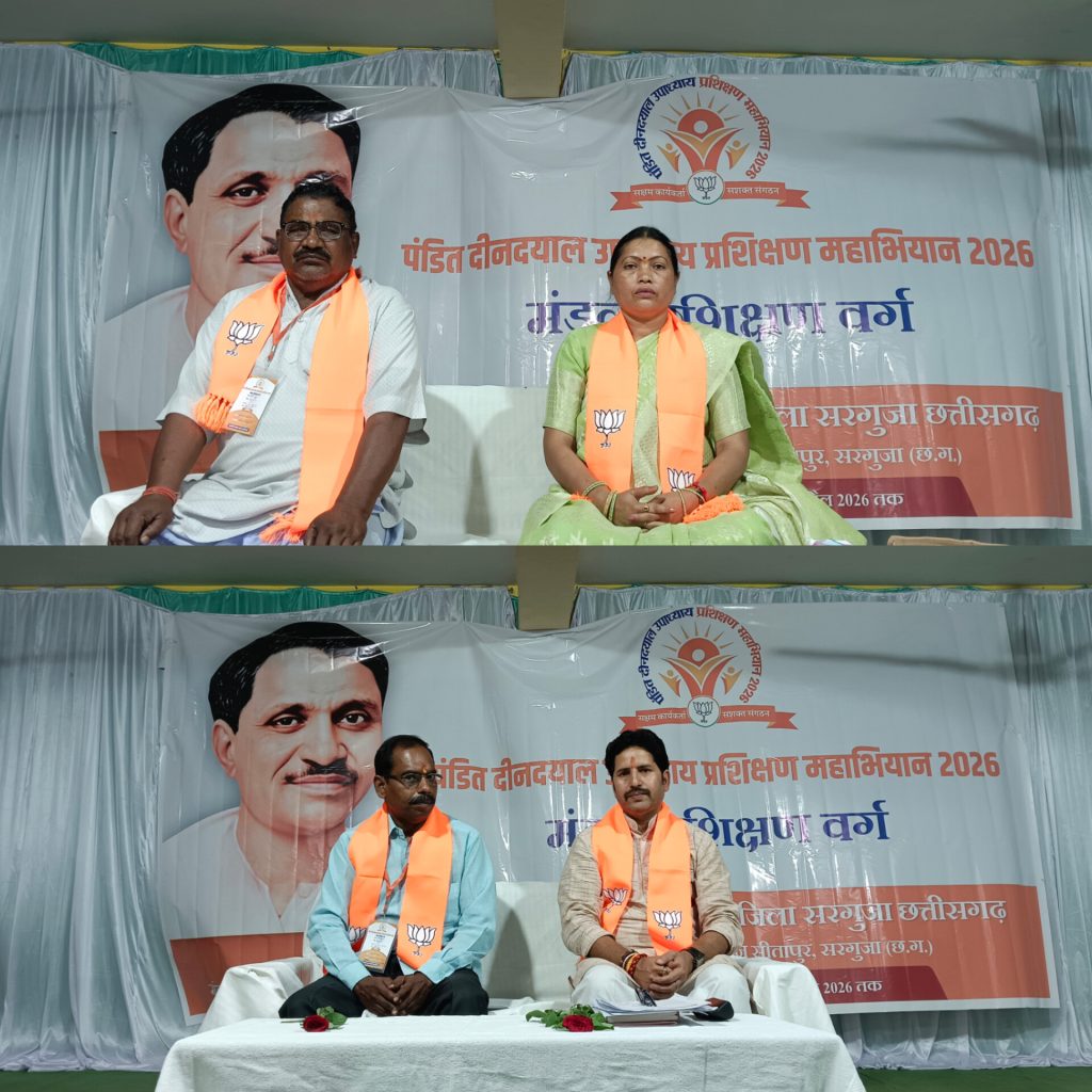 आज दिनांक 01 अप्रैल 2026, बुधवार को सीतापुर स्थित अग्रसेन भवन में पंडित दीनदयाल उपाध्याय प्रशिक्षण महाभियान 2026 अंतर्गत मंडल प्रशिक्षण वर्ग का शुभारंभ किया गया। कार्यक्रम की मुख्य अतिथि सरगुजा जिला पंचायत अध्यक्ष श्रीमती निरूपा सिंह ने पार्टी ध्वज का ध्वजारोहण कर प्रशिक्षण महाअभियान की विधिवत शुरुआत की।