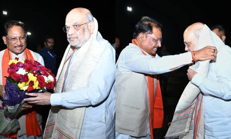 केंद्रीय गृह मंत्री अमित शाह छत्तीसगढ़ दौरे पर पहुंचे, मुख्यमंत्री विष्णु देव साय ने किया आत्मीय स्वागत
