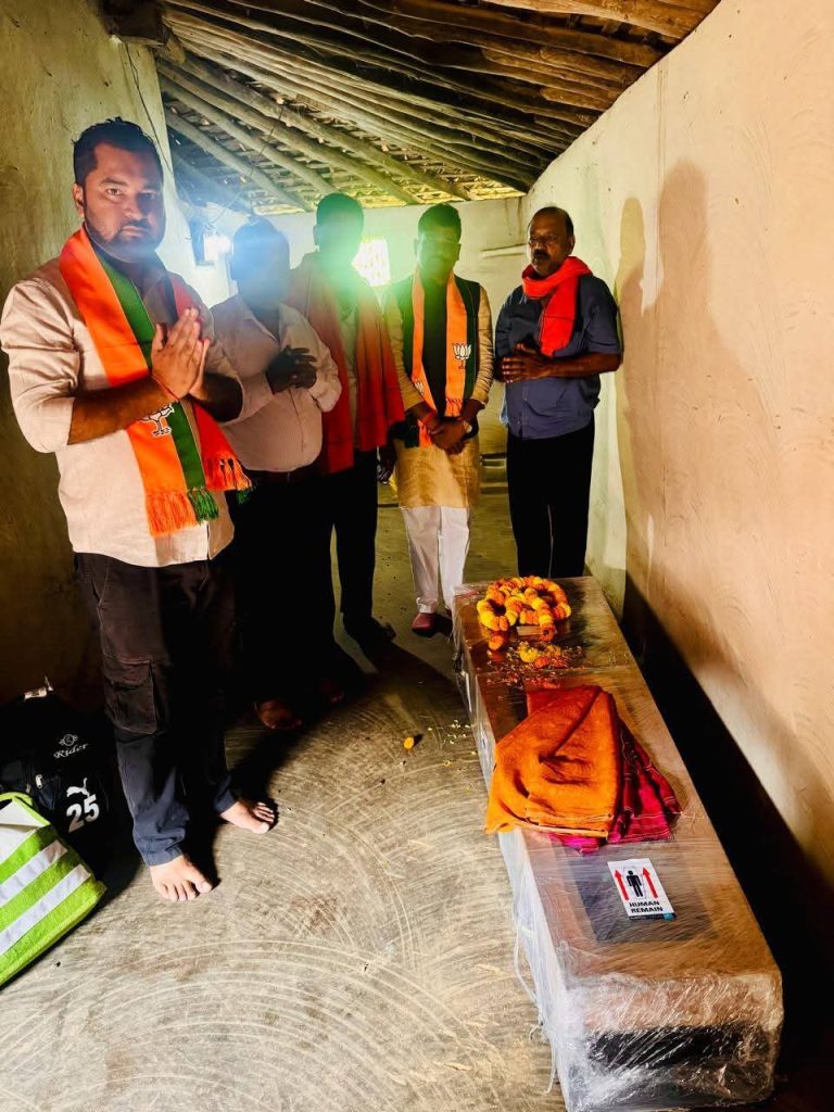 मुख्यमंत्री विष्णुदेव साय एवं संगठन पदाधिकारियों के प्रयास से मृतक का पार्थिव शरीर फ्लाइट से रायपुर लाया गया, भाजपा नेताओं ने पहुंचकर परिवार को दी संवेदना एवं आर्थिक सहायता