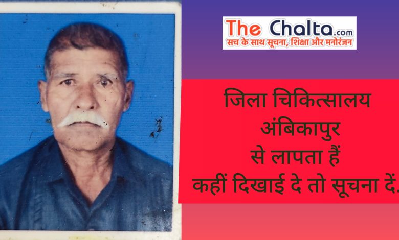ब्रेकिंग न्यूज़ /अंबिकापुर/ सुर्यापारा जामकानी निवासी भोजराम (उम्र लगभग 70 वर्ष) बीते दो दिनों से जिला चिकित्सालय अंबिकापुर में भर्ती थे। जानकारी के अनुसार, बीती रात करीब 2 बजे वे अस्पताल परिसर से कहीं चले गए, जिसके बाद से उनका अब तक कोई पता नहीं चल सका है। परिजनों ने बताया कि उनकी तबीयत में सुधार हो रहा था, लेकिन अचानक लापता होने से सभी चिंतित हैं।