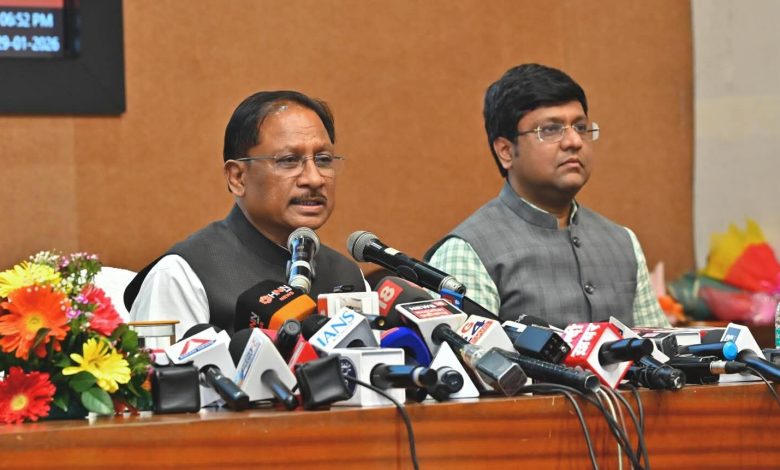 न्यू सर्किट हाउस रायपुर में प्रेसवार्ता, 6.11 लाख करोड़ के निवेश से 99 राष्ट्रीय अवसंरचना परियोजनाएँ संचालित