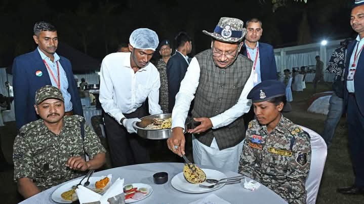 इस अवसर पर मुख्यमंत्री श्री साय एवं मंत्रीगणों ने बटालियन परिसर में जवानों को स्वयं रात्रि भोजन परोसा और उनके साथ बैठकर भोजन किया। अनौपचारिक वातावरण में हुई यह आत्मीय चर्चा जवानों के मनोबल को और सशक्त करने वाली रही।